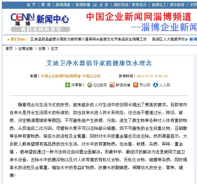 上海艾迪衛(wèi)實業(yè)有限公司倡導家庭健康飲水理念,攜手淄博仁和堂醫(yī)藥連鎖有限公司,將旗下優(yōu)質(zhì)的家庭凈水設備引入淄博,引爆當?shù)貎羲赂锩?/span>